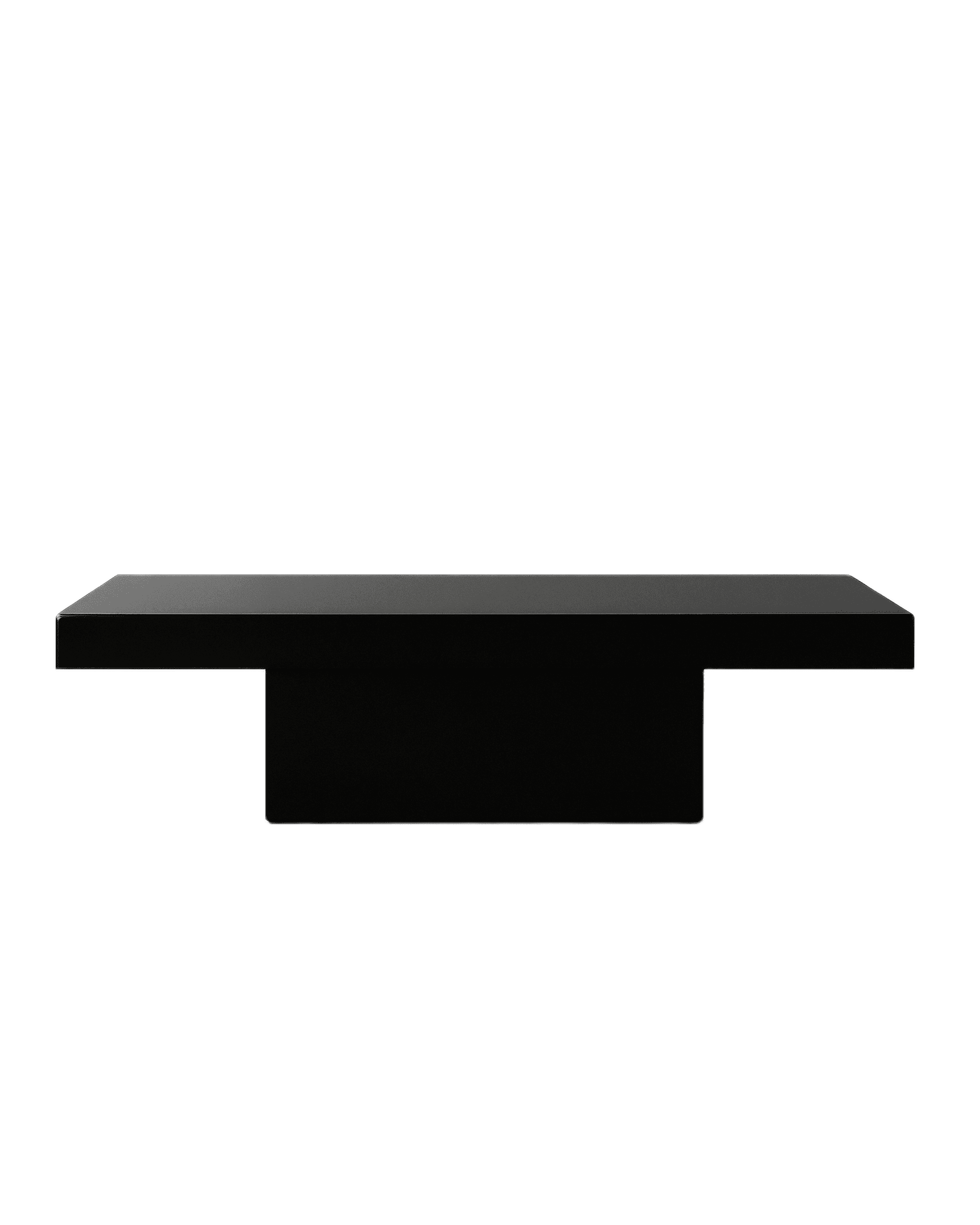 A geometry reduced to its essence. The Obrix Low Table is a study in balance—an expansive black plane resting upon a singular block.